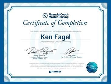 I completed the Dave Ramsey Master Financial Coach training and I am a Ramsey Preferred Coach